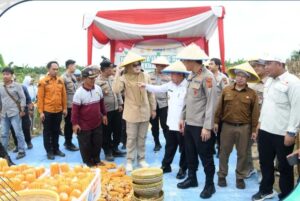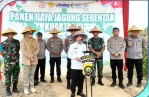 Muara Sabak, KNJ.com – Bupati Tanjung Jabung Timur, Hj. Dillah Hikmah Sari, S.T dampingi Gubernur Jambi, Dr. H. Al Haris, Kapolda Jambi, Irjen Pol Krisno H. Siregar, dan Dandrem 042/Gapu Brigjen TNI Heri Purwanto, S.E, M.Sc melaksanakan panen raya jagung serentak kuartal III jajaran Polri yang tersebar di sejumlah daerah seluruh Indonesia
