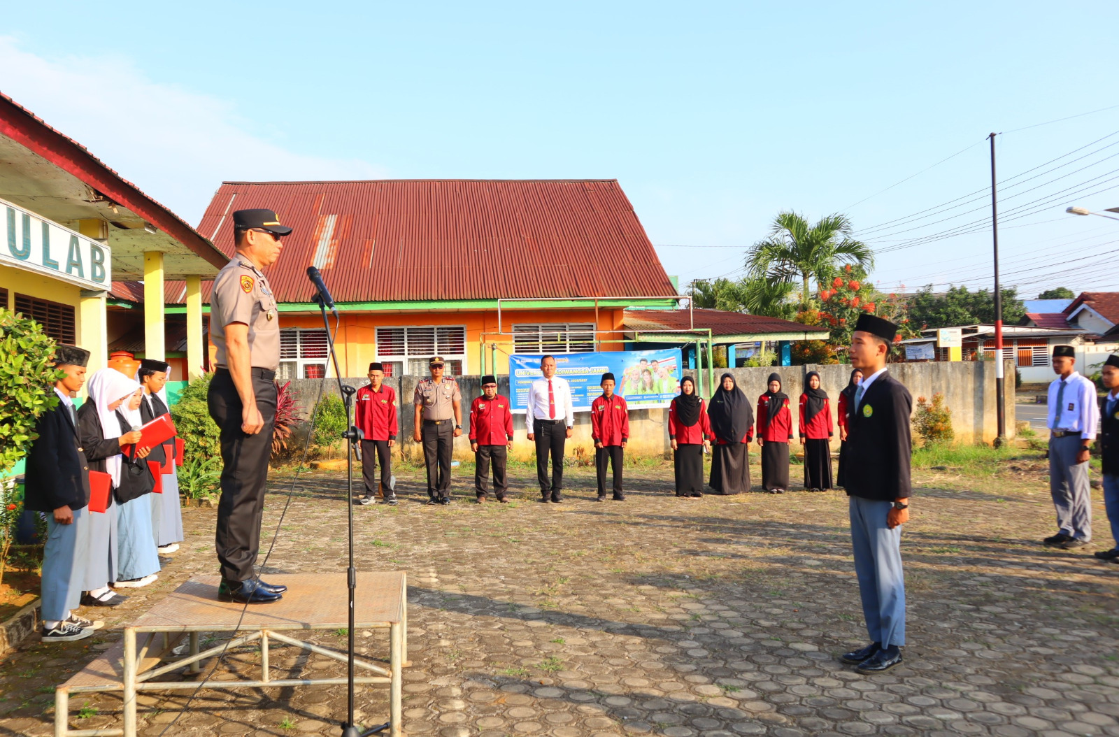 Upacara yang berlangsung di halaman sekolah tersebut diikuti oleh Kapolsek Muara sabak barat IPTU Nurhadi Sutrisno, S.E., KBO Reskrim Polres Tanjab Timur Ipda Satria Jaya Kusuma, S.H., M.H, Kepala Sekolah, staf dewan guru, serta seluruh siswa-siswi Madrasah Aliah Nahdatul Thulab. Suasana berlangsung dengan penuh khidmat dan tertib. Pesan Kamtibmas dan Pembentukan Moral.