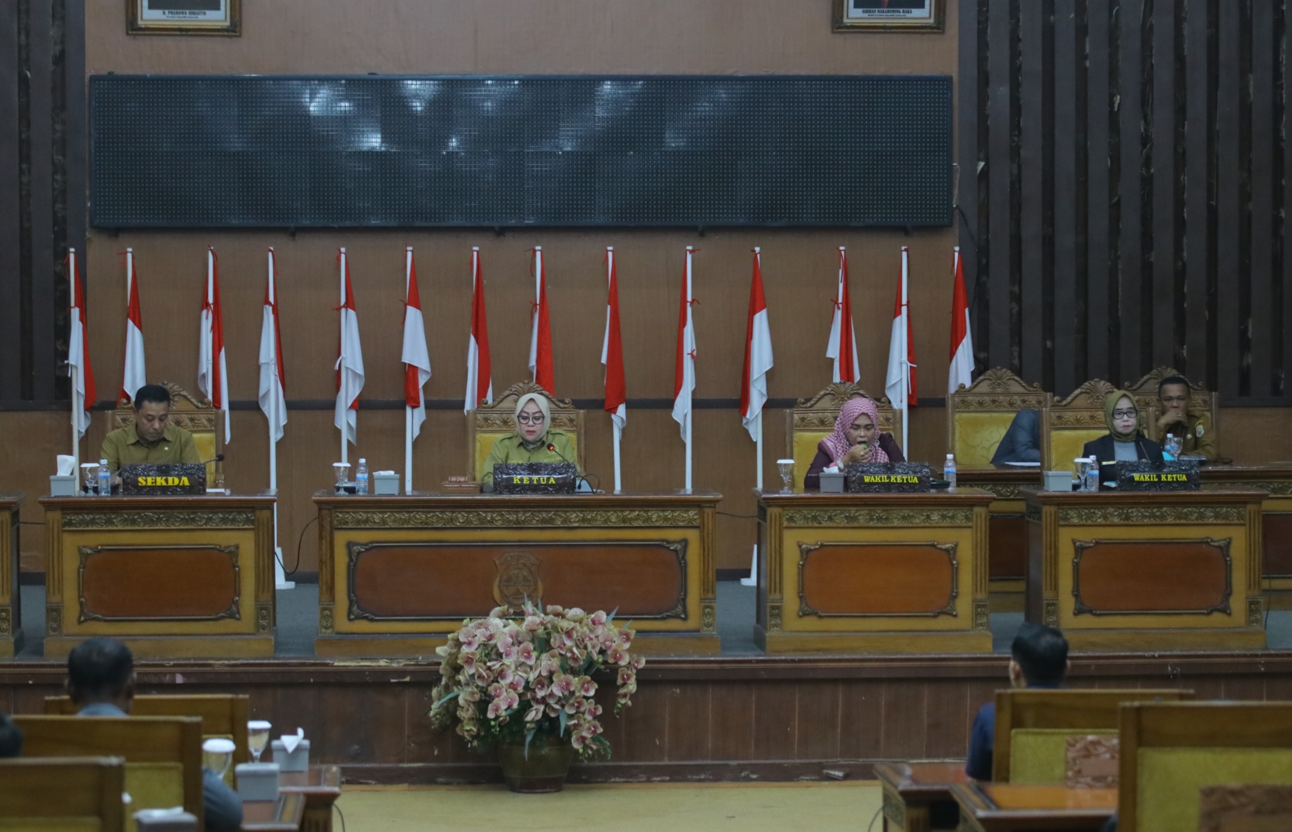 Rapat tersebut dipimpin oleh Ketua DPRD Tanjab Timur, Hj. Zilawati, S.H. didampingi Wakil Ketua I DPRD l, Asniba, A.Md, sekretaris DPRD, Drs. Berilyan dan para Anggota DPRD L, dihadiri oleh Sekretaris Daerah Tanjab Timur, H.Sapril, S.I.P, dan para Asisten Setda, para Staf Ahli, Kepala OPD dan Forkopimda dan para awak media.