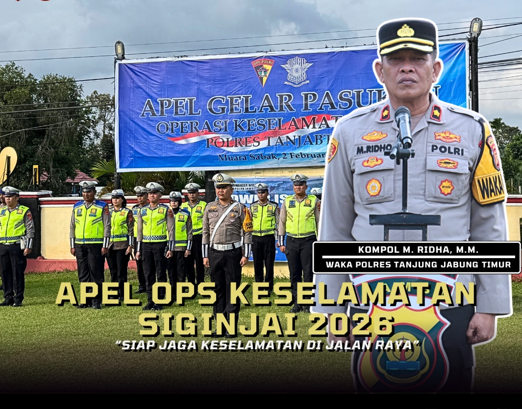 Tanjab Timur, KNJ.com — Polres Tanjung Jabung Timur menggelar Apel Gelar Pasukan Operasi Keselamatan 2026 yang dilaksanakan di halaman Mapolres Tanjung Jabung Timur, Senin (02/02/2026).