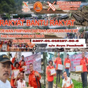 “Alhamdudillah warga Tanjab Timur Jambi sangat antusias, Solidaritas mereka luar biasa, kami selalu akan berencana untuk menyelenggarakan donasi dalam hal bencana alam di daerah seluruh Indonesia , karena Ormas Gerakan Rakyat di ciptakan untuk Maslaah sosial dan kemanusiaan,kata Ketua Penyelenggara